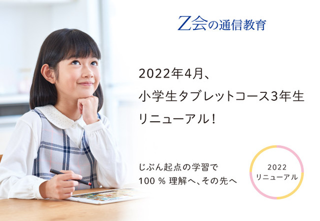 株式会社増進会ホールディングス(Z会グループ)のグループ会社である株式会社Z会は、「Z会の通信教育」において、2022年度4月号より「小学生タブレットコース3年生」をリニューアルいたします【11月29日(月)より申込受付開始】。よりわかりやすくなった教材と、お子さまの「今」を起点とした「ふりかえりプロセス」で、「学ぶことそのものの楽しさ」をより実感できるコースに生まれ変わります。ぜひ資料をご請求のうえ、受講をご検討ください。今なら、期間限定の入会特典もプレゼント!