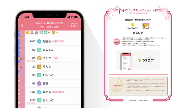 スマートフォン向けアプリの開発・運営を行う株式会社ぴよログ(旧榊原防犯株式会社)(所在地:愛知県半田市 代表取締役社長:榊原 洋平)は、赤ちゃんの育児記録(授乳やオムツ替え、身長・体重など)ができるスマートフォン向け育児記録アプリ「ぴよログ」が「第13回マザーズセレクション大賞2021」を受賞しました!