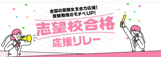 株式会社ベネッセコーポレーション(本社:岡山県岡山市、代表取締役社長:小林 仁、以下:ベネッセ)の「進研ゼミ高校講座」は、コロナ禍による学校行事の延期・中止や部活動の縮小など、思い通りの学校生活を送れず、学びへのモチベーションがなかなか上がらないまま高校・大学受験を迎える中高生を応援するため、「志望校合格応援リレー」を12月5日(日)より開始いたしました。本サービスは、Webサイト「志望校合格応援リレー」(https://kou.benesse.co.jp/school/relaycp/)から、どなたでも無料で参加いただけます。