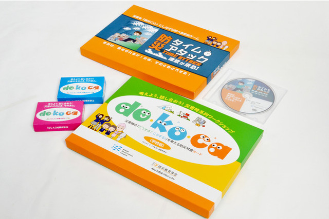 【セット内容】 災害時系列シート(1枚)、解決策シート(8枚)、「じしん」出来事カード(63枚)、「じしんとつなみ」出来事カード(41枚)、ペン(5本)、手順の解説(1冊)