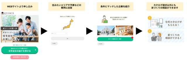 2021年3月より当社が提供する「かぞくのおうち」は、延べ300社以上(2021年11月時点)の住宅会社と提携し、ユーザーの条件にあわせて住宅会社を紹介及び気になる住宅会社のカタログを一括で請求できるWEBサイトです。サービス開始から約5ヶ月で展開地域を全国46都道府県まで拡充いたしました。今後もユーザーの暮らしがより快適になるサービスになるよう努めてまいります。