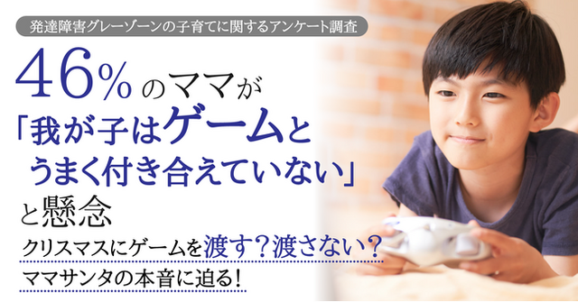 今回、パステル総研では、発達障害グレーゾーンの子どもたちがゲームを楽しむ際にママが感じている課題について明確にするアンケート調査を実施し、クリスマスプレゼントへの対応についてご提案するレポートを作成しました。