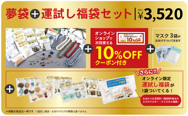 ビーズやパーツのオンラインショップ限定福袋も販売します。
