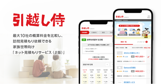 株式会社エイチームのグループ会社である株式会社エイチーム引越し侍(本社:愛知県名古屋市、代表取締役社長:渡邊竜一)は2021年12月14日(火)、「ネット見積もりサービス(β版)」に家族世帯向けの新機能を追加しました。本サービスは、電話・メールのやり取りなしで複数の引越し業者から概算料金を取り寄せ、最終候補業者の訪問依頼までをネット完結させることができます。デジタル化が困難といわれる家族世帯向けの引越し業者選定の負荷軽減を目指し、まずは関東エリアでサービスを開始します。また、本サービスは「ITの力で引越しの手間を解消」することを目的に当社が推進する「引越しDXプロジェクト」の第2弾です。