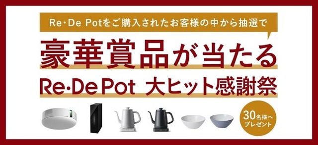 応募条件:期間中に全国の家電量販店および取扱店舗(公式オンラインショップ含む)でRe・De Potをご購入の方。