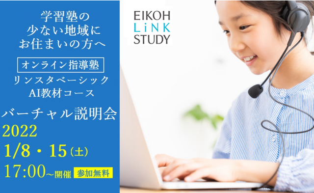 株式会社増進会ホールディングス(Z会グループ)のグループ会社、株式会社栄光(本社:東京都千代田区 代表取締役社長:下田勝昭)が運営するオンライン塾『EIKOH LiNKSTUDY』リンスタベーシックは、首都圏の学習塾の少ない地域にお住まいの中学1年生~高校2年生を対象に、仮想空間での「バーチャル説明会」を2022年1月8日(土)・15日(土)に初開催します。