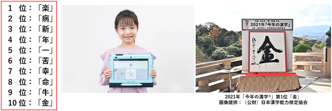 12月13日(月)に漢検協会から発表された「今年の漢字(R)」第1位は「金」で、2021年は、世界的なスポーツの祭典における日本人選手の活躍や、大谷翔平選手のMVP受賞、藤井聡太棋士の最年少四冠達成など、各界でこれまで成し得なかった「金」字塔が打ち立てられた、輝かしい年だったという世相を表していました。そのような中、子どもたちは、コロナ禍であっても“明るく前向きな気持ち“で1年を過ごしていたことが明らかになりました。日本漢字能力検定協会 「今年の漢字」統括責任者 中村真樹氏は、2021年を「昨年には見られなかった明るいイメージの漢字が上位に並んでおり、皆様の気持ちが不安一辺倒から、コロナに負けない、乗り越えるという方向に変わってきているのではないか」と振り返っています。