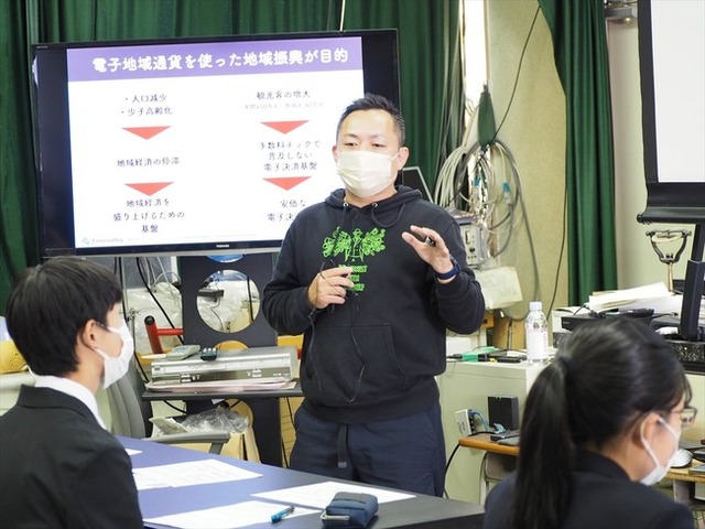 今回都立小石川中等教育学校で実施された特別授業には、首都圏を中心に子どもや若者を対象とした社会教育活動に取り組む認定特定非営利活動法人夢職人(本社:東京都江東区、理事長:岩切 準)をコーディネーターとして、フィノバレーを含む5社のSDGsに取り組む企業・団体が講師として参加しました。各社の授業は事前にそれぞれのクラスを希望した生徒に向け行われ、フィノバレーは35名の生徒を対象に、「デジタル地域通貨を使ったソーシャルイノベーション(社会課題解決)」をテーマとする授業を実施しました。