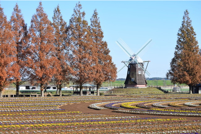 あけぼの山農業公園は、『遊んで学べる花の里 体感ファーマーズパーク』をキャッチフレーズとしており、加工実習館やバーベキューガーデンなどの農業公園ゾーンと、市民農園や、柏市のシンボルともいえる”風車”がある体験農園ゾーンがあります。花畑では、チューリップ、ヒマワリ、コスモスなどが楽しめます。