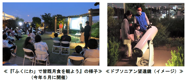 にて、コスモプラネタリウム渋谷のチーフ解説員の永田美絵さんによる解説を交えながら、天体望遠鏡で皆既月食の様子を観察できるイベント『「ふくにわ」で皆既月食を観よう』を開催しました。