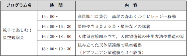 京王電鉄株式会社(本社:東京都多摩市、取締役社長:紅村 康)では、沿線での学びの機会を提案する「京王アカデミープログラム」の一環として、1月29日(土)に「親子で楽しむ!星空観察会」を高尾の森わくわくビレッジにて開催します。
