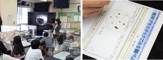 調査後、各班で集めたプラスチックごみを入れたプラケースを、電子黒板で共有し、班ごとに内容の違ったプラスチックごみを見ることができました。今回の活動を通し「たった少しの砂の中に10こ以上くらいもごみがあった。海の砂浜がどれだけよごれているかわかった」、「これからはできるだけ買い物のときはエコバッグを使いたい」など、一人一人自分の考えや感想をワークシートに書くことができました。私たちにできることは何なのかを考えるにあたり、疑問に思ったことなどは本やインターネットで調べたり、大人の人に聞いたりして、深めていって欲しいと思います。