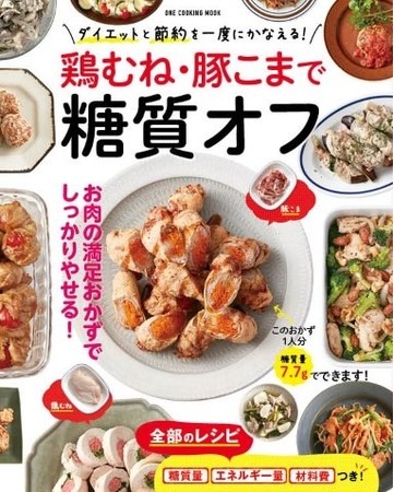 「鶏むね・豚こまで糖質オフ」は、いつも安定した価格で購入できる鶏むね肉と豚こま切れ肉を活用して、ボリュームはあるけれど、糖質はしっかり抑えられるレシピを掲載した料理ムック本です。全部のレシピに「糖質量」「エネルギー量」「材料費」の表記つきなのでダイエットと節約を一度にかなえられます。