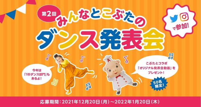 ■応募方法:TwitterまたはInstagram「みんなとこぶたのダンス発表会」アカウントをフォローのうえ、撮影いただいた「こぶたダンス」動画を投稿にて応募