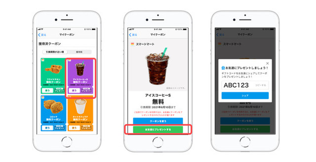 ※「クーポンギフト」のアプリ画面イメージ