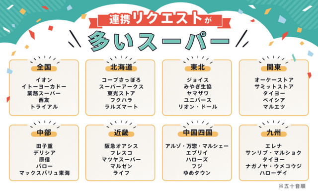 SIRU+に連携してほしいスーパーのリクエストをアプリ上で募集しています。今回、連携リクエストの多いスーパーをエリアごとに集計しました。