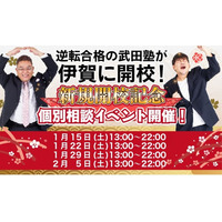 三重県伊賀市に学習塾『武田塾伊賀校』が開校!1月15日~4週連続で個別相談イベント「地上最速の勉強方法 個別に教えちゃいますスペシャル」の開催が決定。大学受験予備校日本初!授業をしない。武田塾