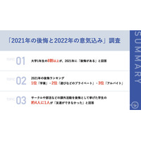 2021年、コロナ禍入学した大学1年生の73.2%が、2021年の後悔として「学業」と回答
