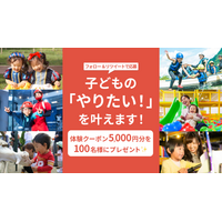 アソビュー、まん防延長に伴い『子どもの「やりたい!」を叶えます!体験クーポン5000円分を100名様にプレゼント』キャンペーンを2月10日より開始。