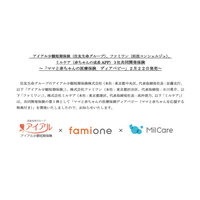 アイアル少額短期保険(住友生命グループ)、ファミワン(妊活コンシェルジュ)、ミルケア(赤ちゃんの成長APP)3社共同開発保険~「ママと赤ちゃんの医療保険 ディアベビー」2月22日発売~