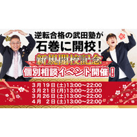 宮城県石巻市に学習塾『武田塾石巻校』が開校!3月19日~4週連続で個別相談イベント「地上最速の勉強方法個別に教えちゃいますスペシャル」の開催が決定しました。大学受験予備校 日本初!授業をしない。武田塾
