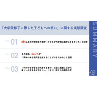 【大学院生の子がいる親に調査】8割以上が「子どもが大学院に進学してよかった」と回答 新たな一歩を踏み出す我が子へ「社会に貢献しながら楽しい人生を歩んでほしい」などのメッセージも
