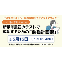 中高生が新学年最初のテストで成功するための「勉強計画術」を伝授!学習塾の代表によるオンラインセミナーを3/13(日)に開催!