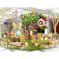 シルバニアファミリーが本物のお花に囲まれ、春の装いで地下街に登場!イースターやイチゴ狩りなど、春ならではの演出やコスチュームに注目♪