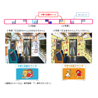 大江戸線「子育て応援スペース」設置車両に新デザイン「だるまちゃん」シリーズが登場