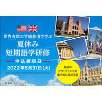 2022年夏催行予定の「世界有数の学園都市で学ぶ 夏休み短期語学研修」の申込を、4月15日より開始いたしま…