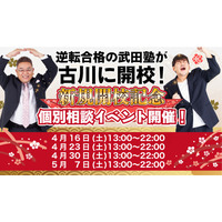 宮城県大崎市に学習塾『武田塾古川校』が開校!4月16日~4週連続で個別相談イベント「地上最速の勉強方法 個別に教えちゃいますスペシャル」の開催が決定。大学受験予備校 日本初!授業をしない。武田塾