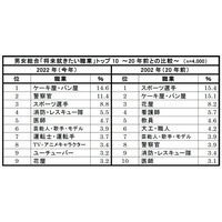 2022年版 新小学1年生の「将来就きたい職業」、親の「就かせたい職業」 1位は「ケーキ屋・パン屋」、20年前との比較では人を助ける職業が人気上げる