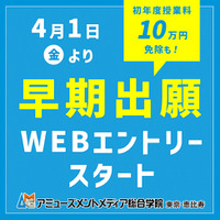 アミューズメントメディア総合学院(AMG)の2023年4月入学生対象の早期出願エントリーが4月1日よりスタート