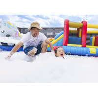 ウォータービバークは、毎年ファミリーに大好評の屋上イベント。巨大泡バズーカーで泡まみれになって遊ん…