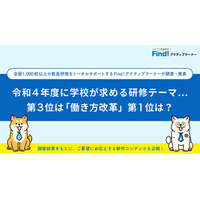 【全国1,000校以上の教員研修をトータルサポートするFind!アクティブラーナーが調査・発表】令和4年度に学校が求める研修テーマ 第3位は「働き方改革」…第1位は?