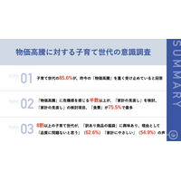 子育て世代の85.6%が昨今の「物価高騰」に危機感 半数以上が「家計の見直し」を検討、まずは「食費」から