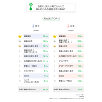 【LINEリサーチ】自宅で見たり育てたりして楽しむ植物・花は男女ともに「観葉植物」が1位、植物や花を手に入れる場所は「ホームセンター」が4割超でもっとも高い結果に