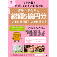 女性活躍を応援している企業100社に、産後ケアホテルを“総額5億円分”企業の福利厚生で無料提供!