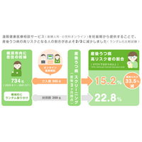 「産後うつ病の高リスク者を33.5%減」:遠隔健康医療相談サービス(産婦人科・小児科オンライン)の効果として実証