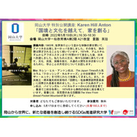 【岡山大学】特別公開講座 Karen Hill Anton「国境と文化を越えて、家を創る」〔5/19,木〕
