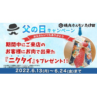 父の日には焼肉・ホルモン×蛇口からレモンサワー『焼肉ホルモンたけ田』全店で、2022年6月13日(月)よりネクタイ型の和牛をプレゼント!