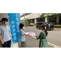 6 月 18 日の“ホタテの日”に合わせてスーパーマーケット前にて“環境改善”についての啓発活動実施