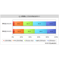 【文房具に関する調査】文房具にこだわりがある人は2割強、女性10~30代で比率高い。購入時の重視点は「価格」が7割弱、文房具にこだわりがある層では「デザイン」が最多