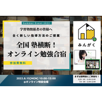 「全国・塾横断!無料オンライン勉強合宿」など、夏休み直前の今だから刺さる生徒募集ノウハウ公開を、みんがく(塾の垣根を越えた合同オンライン自習室)が決定