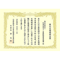令和3年度「東北水環境保全賞」を受賞
