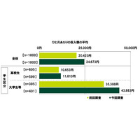 SMBCコンシューマーファイナンス調べ ひと月あたりの収入額 大学生等では平均43,883円、前回調査より24%の大幅増加