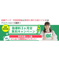 子どもたちの"できた!"を増やす『家庭教師のアルファ』が、今なら1ヶ月分無料!成績アップ・受験対策をおトクに始めるチャンス!