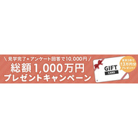 自宅モデルハウスの見学で総額1,000万円をプレゼントするキャンペーンを開催。ひと家族につき、最大30,000円の獲得のチャンス!