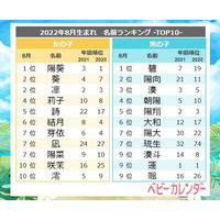 名前で夏らしさを感じる「夏っぽネーム」が増加!「凪」「海」「夏」などSUMMER感ある漢字を使った名前が大人気!2022年『8月生まれベビーの名づけトレンド』発表!