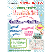 【祝】堺整骨院 JR久留米院が、開院3周年を記念して「ありがとうキャンペーン」を実施致します!
